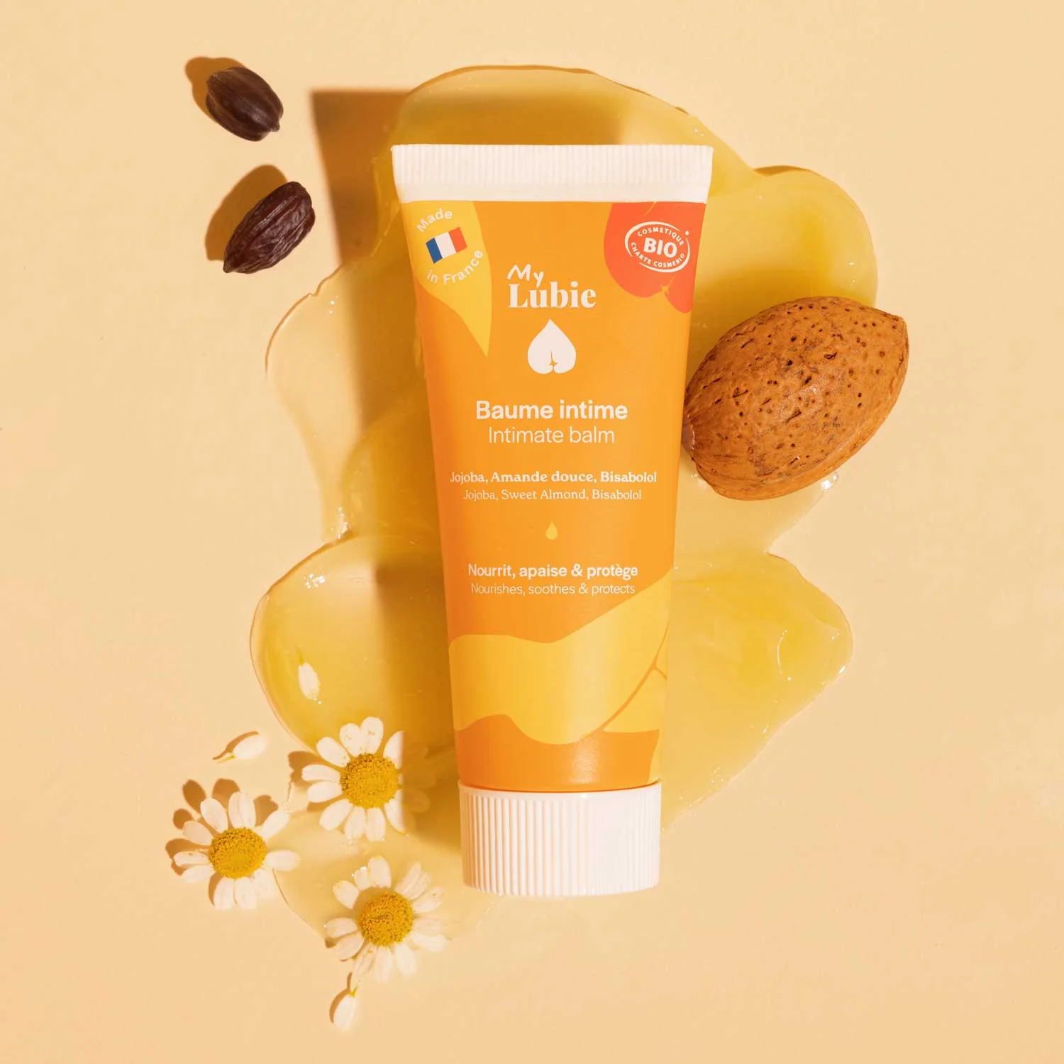 Ce baume-en-huile prend soin de votre intimité grâce à ses actifs naturels et bio, pour tous les jours - ou toutes les fois où l'on sent que quelque chose ne va pas en bas.
